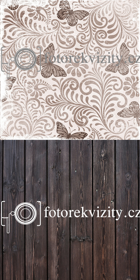Vinylové fotopozadí spojené s fotopodlahou - Dřevěná podlaha a pozadí s motýlky