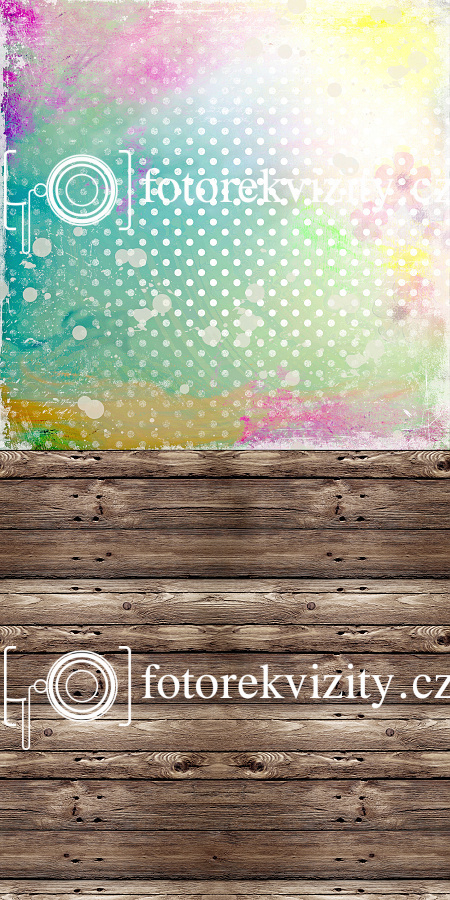 Vinylové fotopozadí spojené s fotopodlahou - Tmavá podlaha a duhové pozadí s texturou
