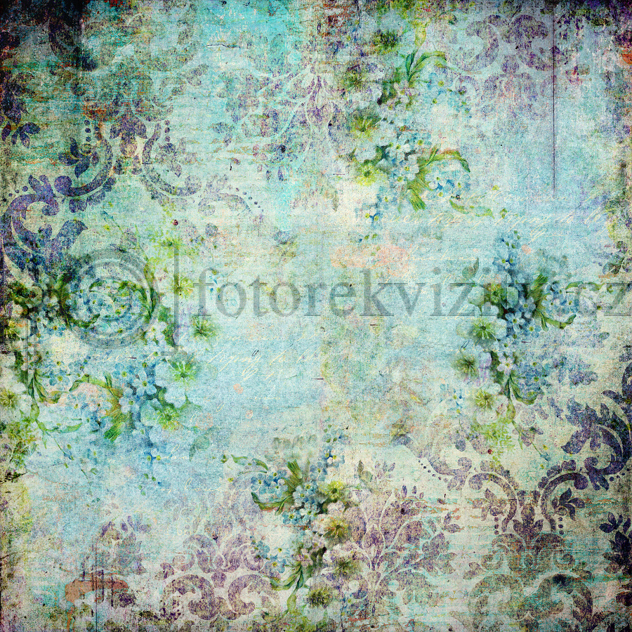 Fotografické vinylové pozadí. Vinylové fotopozadí  - Vintage květy s texturou Podle velikosti bude proveden ořez z náhledového obrázku. Pokud máte svůj originální vzor, není problém udělat pozadí či podlahu podle Vašich návrhů. Vždy ale prosíme pouze o Vaše fotografie či koupené s licencí. Kont... celý popis