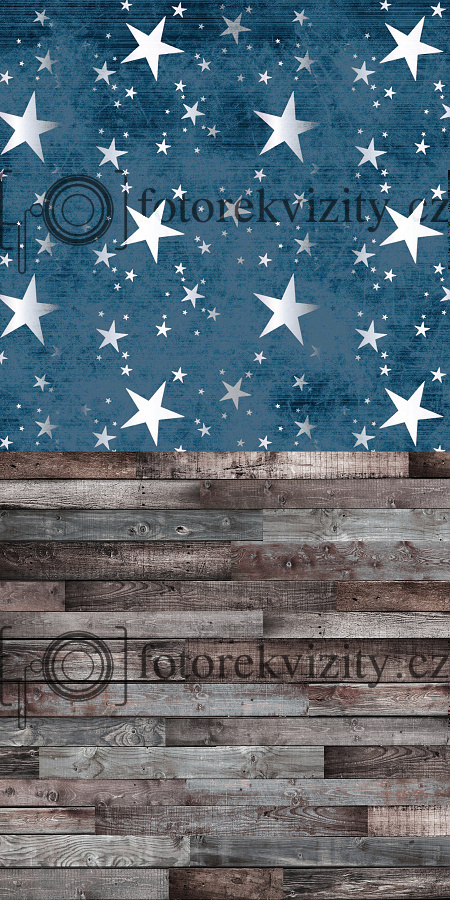 Vinylové fotopozadí spojené s fotopodlahou - Hvězdná obloha a dřevěná podlaha