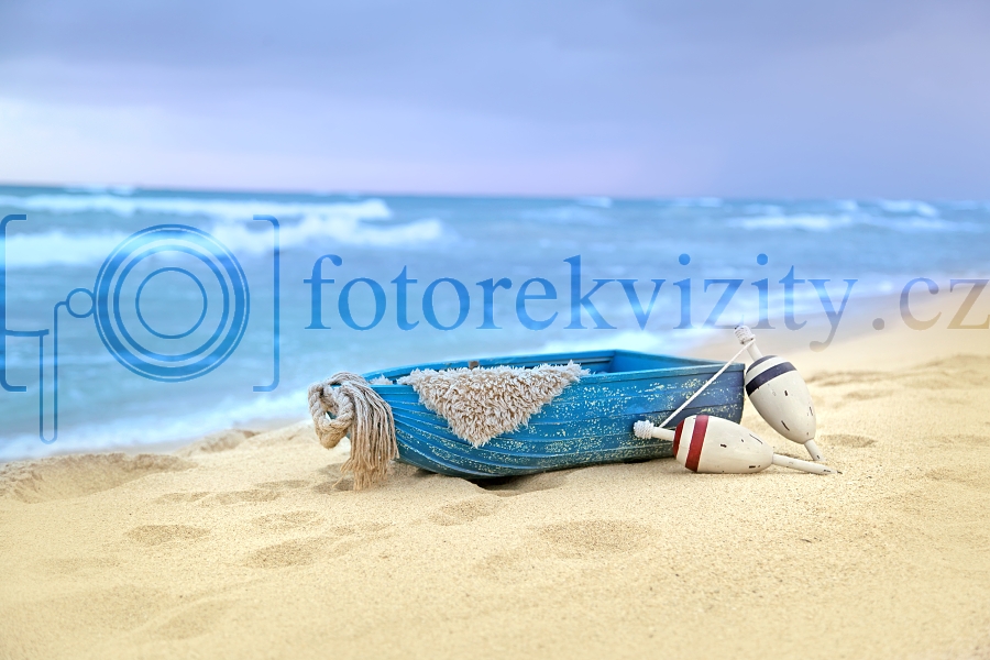 Vinylové fotopozadí - Pláž s lodičkou - moře