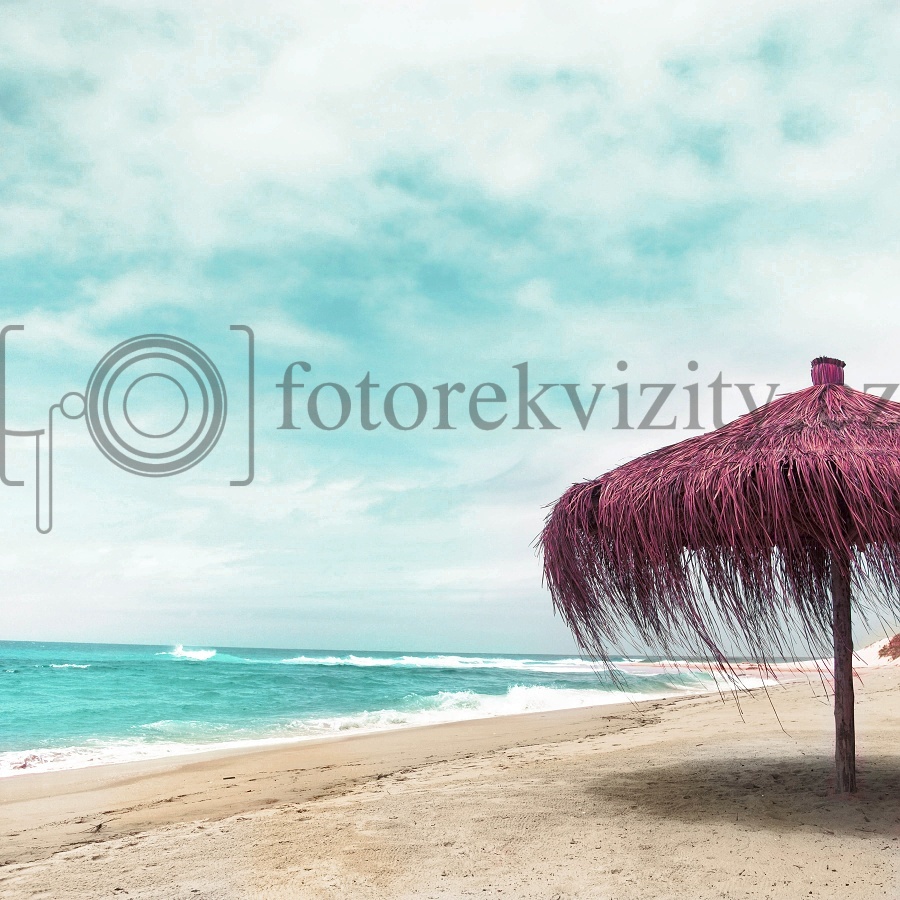 Fotografické vinylové pozadí. Vinylové fotopozadí  - Pláž s deštníkem - moře Podle velikosti bude proveden ořez z náhledového obrázku. Pokud máte svůj originální vzor, není problém udělat pozadí či podlahu podle Vašich návrhů. Vždy ale prosíme pouze o Vaše fotografie či koupené s licencí. Konta... celý popis