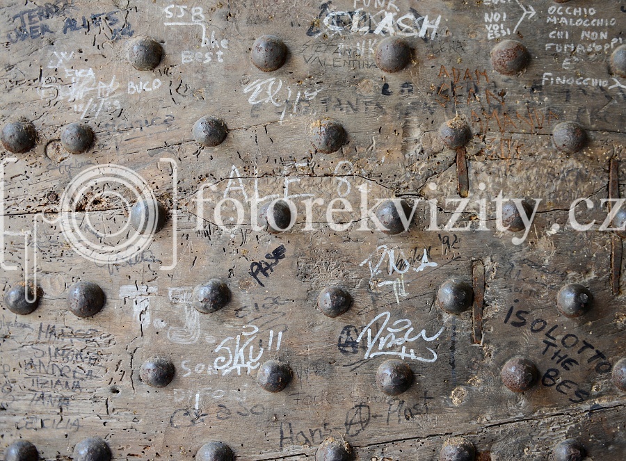 Vinylové fotopozadí / fotopodlaha - surové dřevo, popsané dveře