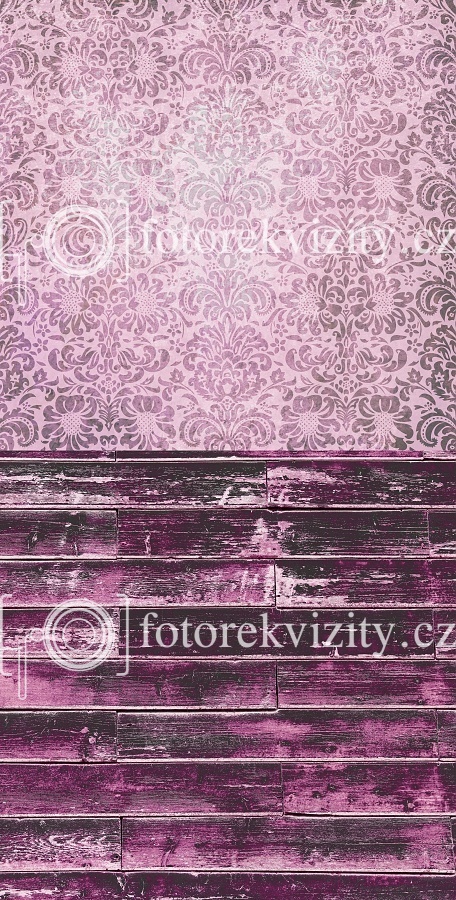Vinylové fotopozadí spojené s fotopodlahou - dřevěná podlaha a vintage pozadí - růžovo černá varianta