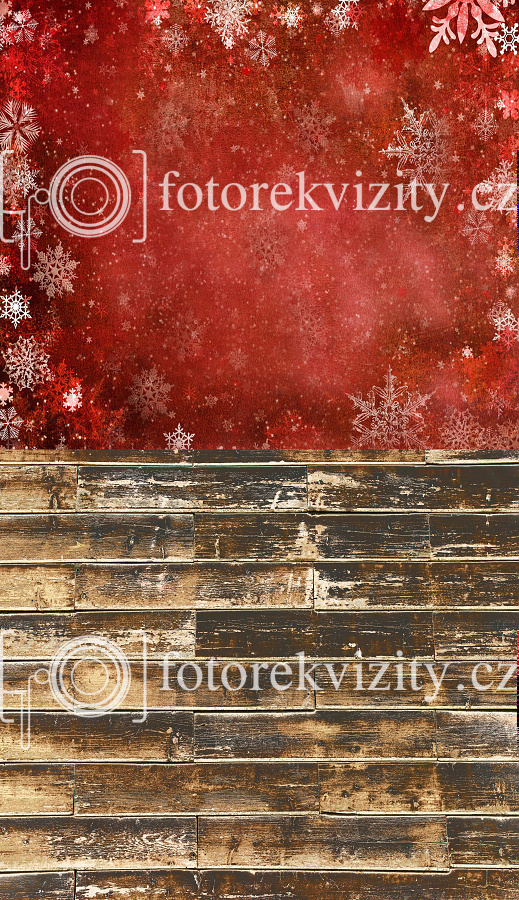 Vinylové fotopozadí spojené s fotopodlahou - dřevěná podlaha a sněhové vločky - vhodné na vánoční focení