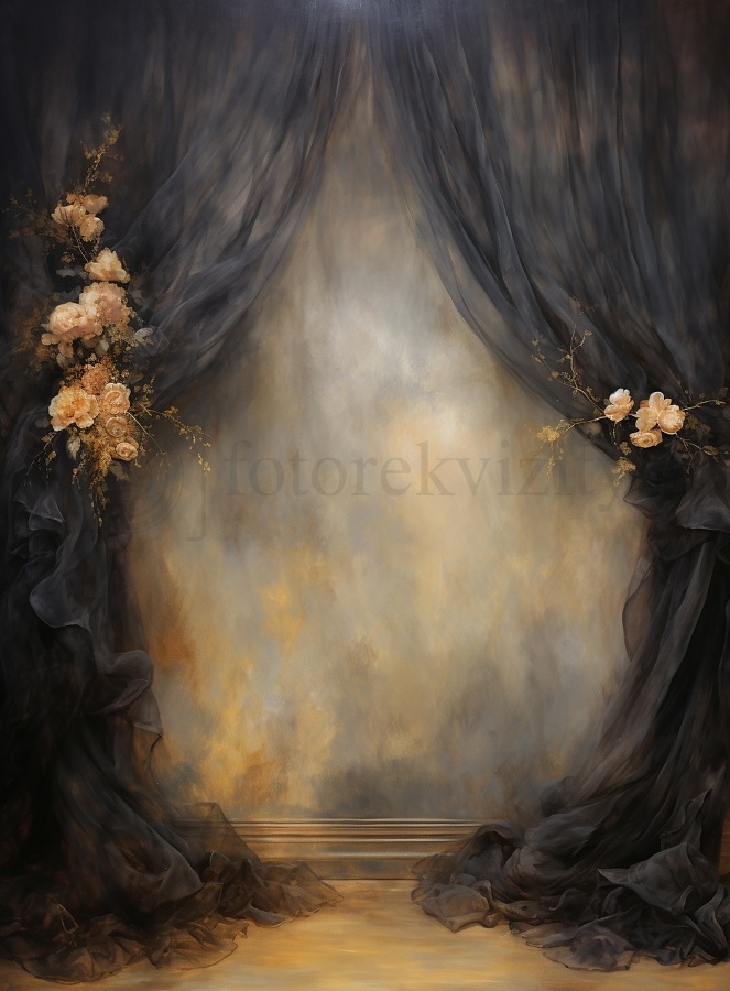 - Vinylové fotopozadí - Černozlaté pozadí s voály a květy
