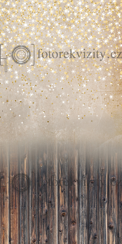 Vinylové fotopozadí spojené s fotopodlahou - Dřevěná podlaha a vločky