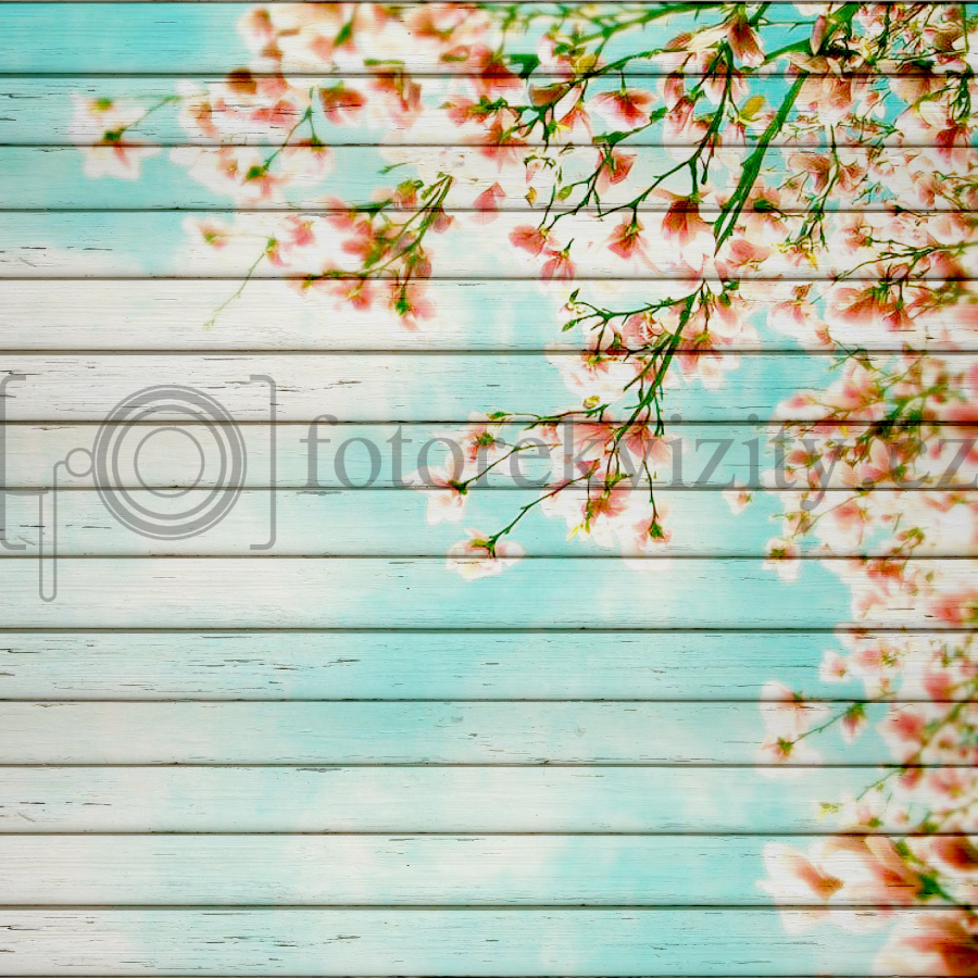 Vinylové fotopozadí - Bílá prkna a obloha květy