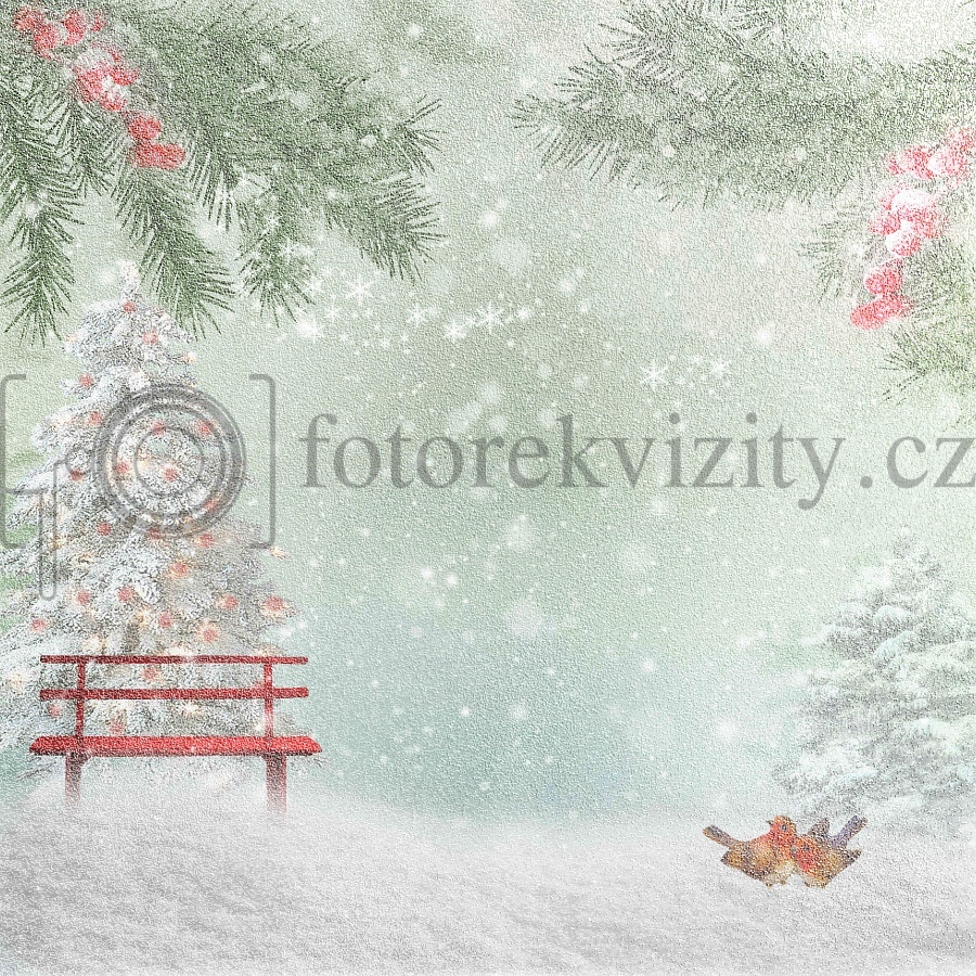 Vinylové fotopozadí - Zasněžená krajina - vánoční