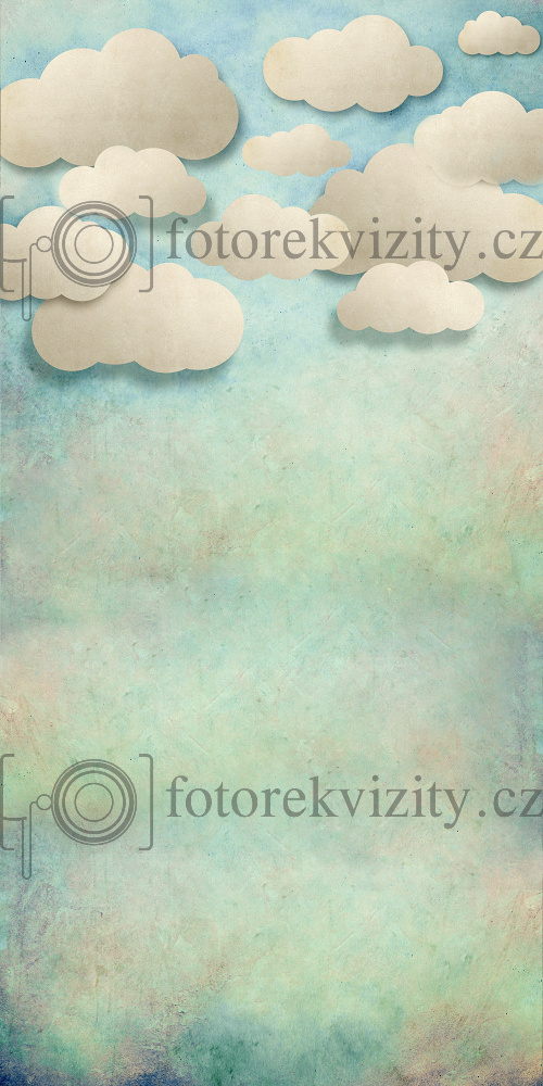 Vinylové fotopozadí spojené s fotopodlahou - Texturovaná podlaha a přechodové pozadí s mraky