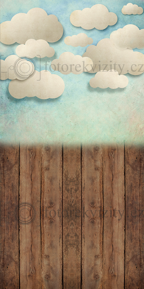 Vinylové fotopozadí spojené s fotopodlahou - Dřevěná podlaha a pozadí s mráčky