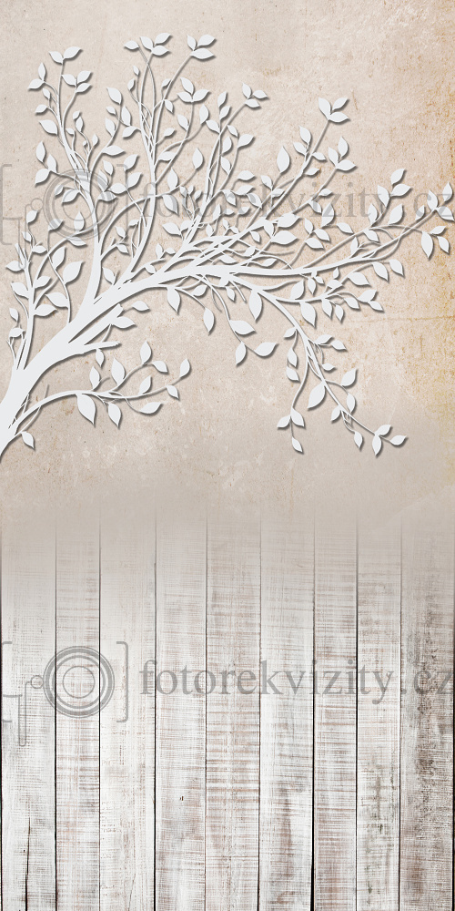 Vinylové fotopozadí spojené s fotopodlahou - pozadí s texturou a stromem 3D