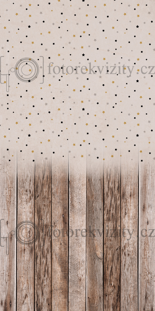 Vinylové fotopozadí spojené s fotopodlahou - imitace dřevěných prken, hvězdičky s texturou