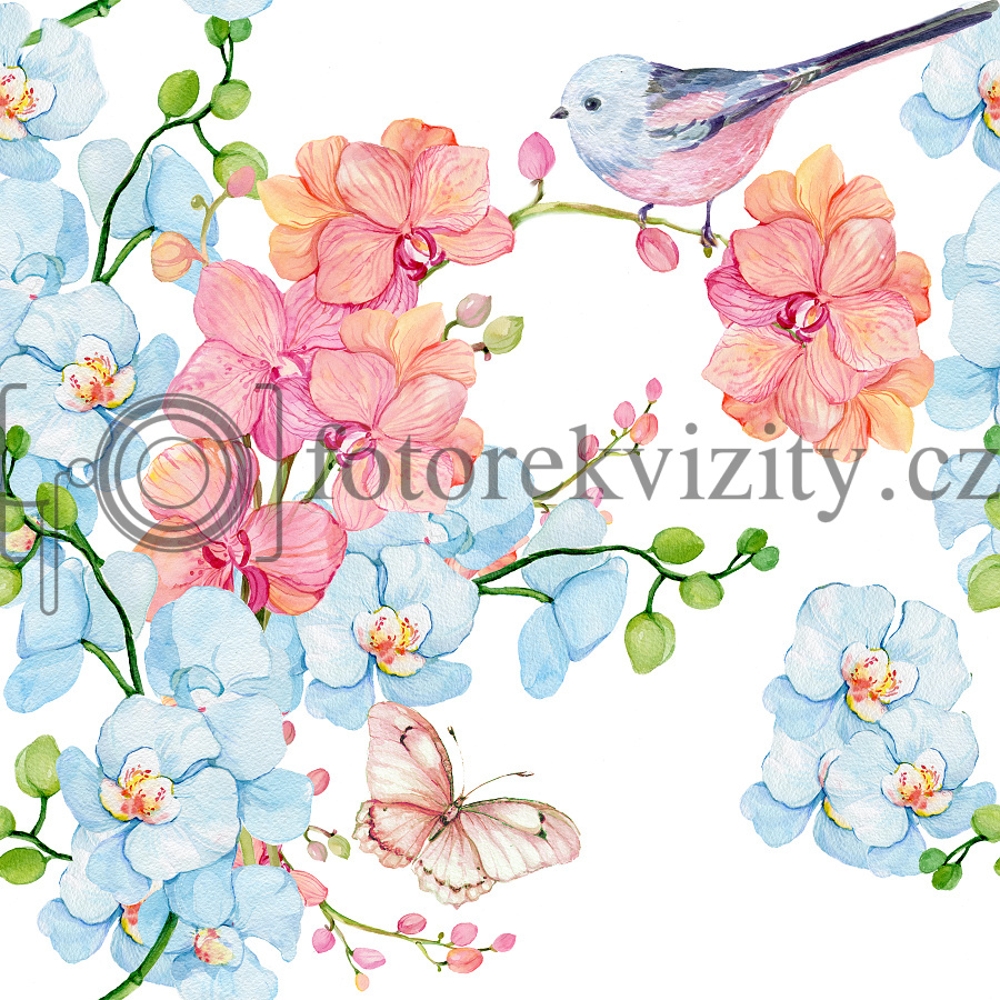 Vinylové fotopozadí - Jaro, květy, orchidej, ptáčci, motýl