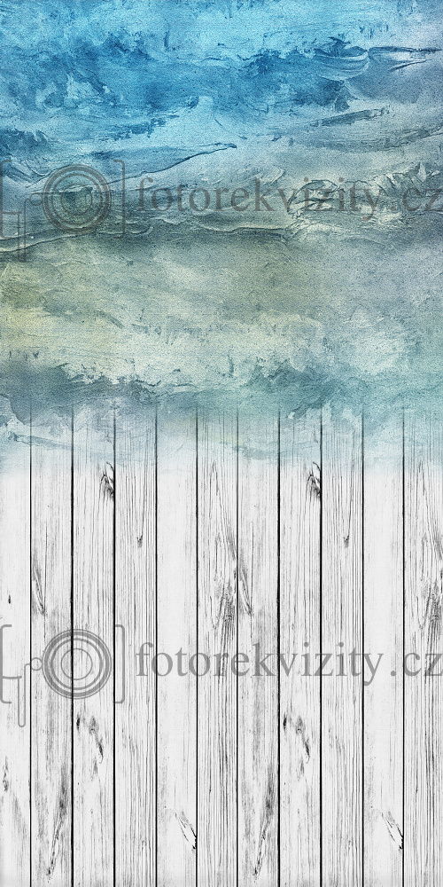 Vinylové fotopozadí spojené s fotopodlahou - imitace dřevěných prken, barevné pozadí zeď, nebe